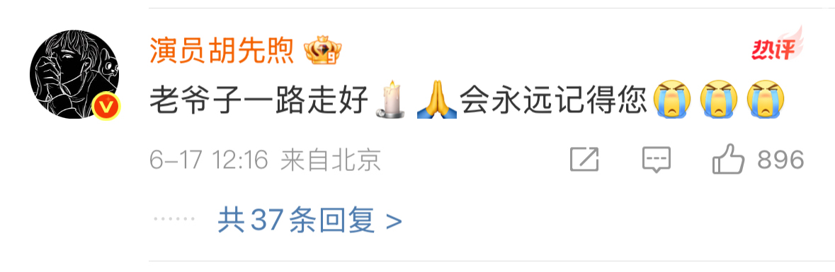 曾与陈彼得在“异人之夏”联欢会上有过合作的演员胡先煦在讣告下留言悼念:“老爷子一路走好,会永远记得您!”